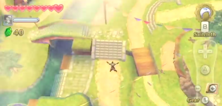 Prenez votres célestrier et lâchez vous precisement ici ! (Et le plus près possible de la zone de transition) Link s'écrasera alors dans "le vide" Risque : Aucun.