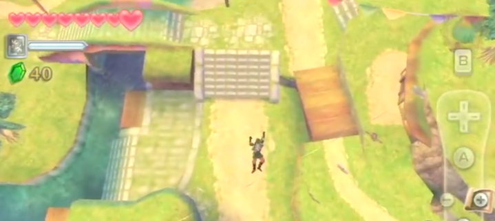Prenez votres célestrier et lâchez vous precisement ici ! (Et le plus près possible de la zone de transition) Link s'écrasera alors dans "le vide" Risque : Aucun.