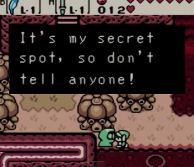 Ainsi, avec votre ami Ctrl+F, vous pourrez taper les mots "secret" ou encore "ne répète" ("don't tell" pour les versions anglaises) ou des trucs qui se rapprochent pour trouver la phrase. Quant à moi, un simple "みんな" ou encore "ナイショ" me permet généralement de trouver ce que je veux dans les versions jap. C'est ce qui m'a permis de trouver celle de LADX, et qui m'a aussi permis d'affirmer avec certitude qu'il n'y a rien de ce dialogue dans LA N&B. Par contre, il faut bien se dire que ça donne le dialogue mais pas la personne qui le dit. A partir de là, il faut chercher dans le jeu pour voir où c'est. Mais généralement, regarder les dialogues autour aide à situer à peu près l'emplacement de la phrase pour peu que l'on connaisse bien le jeu .